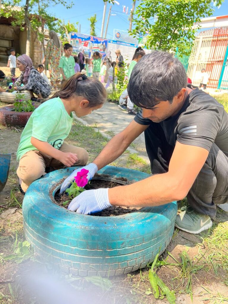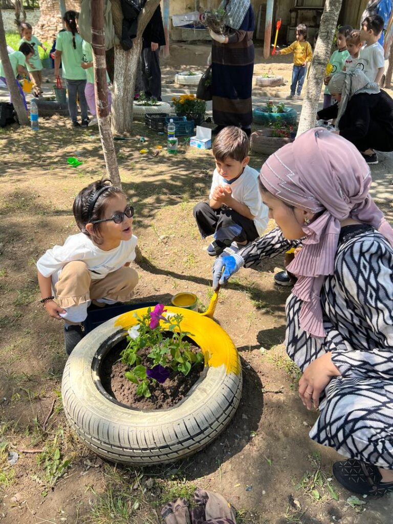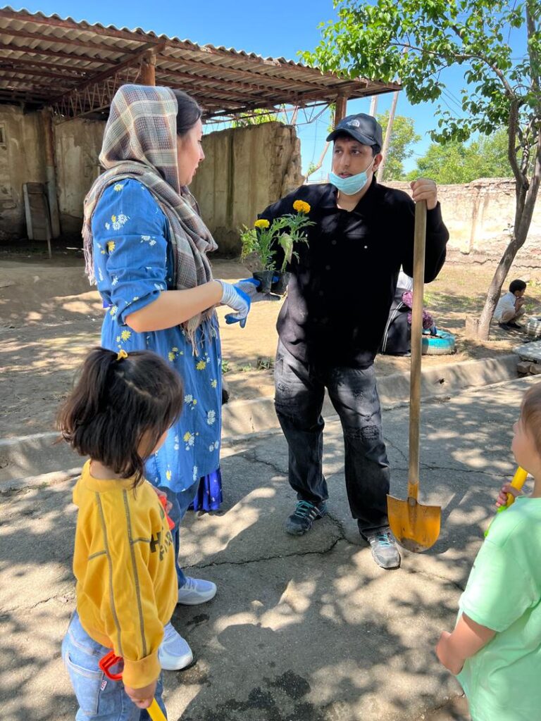24.04.2025 ОО «Дети, беженцы и уязвимые граждане» -RCVC в рамках проекта «Улучшение управления миграцией и доступа к услугам для афганских перемешенных лиц в Пакистане и Центральной Азии» при поддержке Международной организации по миграции (МОМ) в Таджикистане организовал Акция «День заботы о природе» в детском саду №7 города Вахдат . На мероприятие приняли участие 37-человек из числа местных и беженцев. Цель мероприятия заключалось в том что воспитать у детей чувства ответственности за окружающую среду, формирование экологической культуры, укрепление дружбы и сотрудничества между местным населением и беженскими семьями. Акция началась с короткой беседы о важности охраны природы, которую провели воспитатели. Детям в простой и доступной форме рассказали. Дети вместе с родителями и воспитателями высаживали цветы и деревья; участники убрали мусор, очистили клумбы и игровую зону были проведены игры и викторины на тему природы родители-беженцы и местные жители совместно оформляли стенгазету «Мы за чистый мир».Мероприятие сопровождалось весёлой музыкой, детскими рисунками и дружеским общением.Итогом и результатом данного мероприятия послужила крепкое взаимодействие между семьями местных жителей и беженцев.Дети получили практический опыт заботы о природе и совместной работы.Территория детского сада стала чище и уютнее.Родители проявили высокую активность и заинтересованность в подобных акциях.